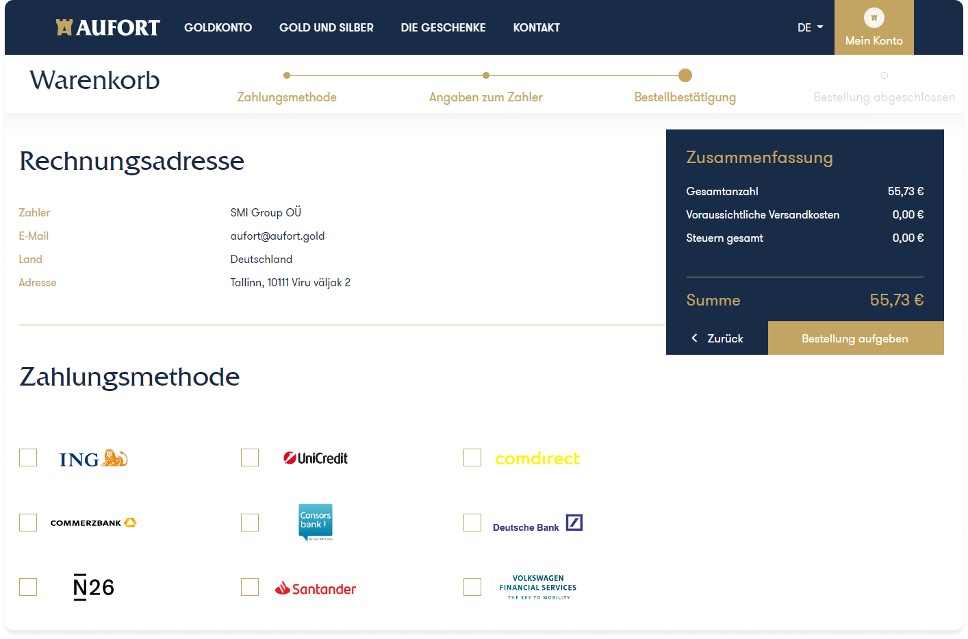 3. Wählen Sie eine Zahlungsmethode aus und bestätigen Sie Ihre Bestellung.
